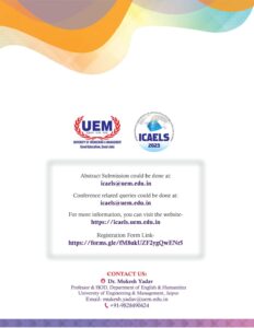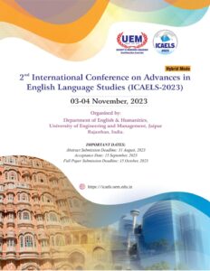 Management (UEM), JAIPUR is pleased to announce to conduct its 2nd International Conference on Advances in English Language Studies (ICAELS-2023) to be held on 3-4 November, 2023