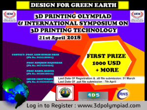 IEM-UEM group will be organizing ‘3D Printing Olympiad and International Symposium-2018′ on 21st April 2018.