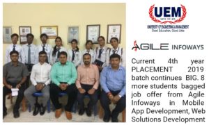 8 more students of current 4th year (2019 passing out batch) bagged job offers from Agile Infoways – core programming in Mobile App Development, and Web Solutions Development.
