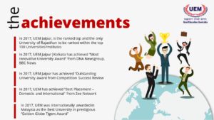 – A huge number of alumni members of UEM Jaipur are pursuing their higher studies in the IITs, Universities/Institutes of national importance and foreign Universities/Institutes