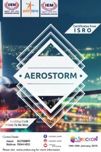In Ureckon 2018, UEM Kolkata in association with ISRO will bring the utmost challenge not only in surface but also in ‘air’. This event named Aerostorm will give you the opportunity to make your ‘aerobots’ ready to race it out, to overcome the challenges you would like to face competing with others.