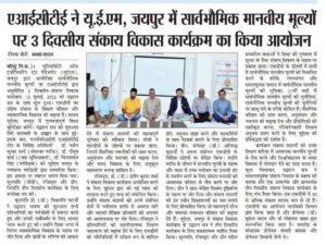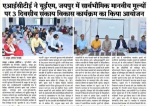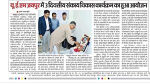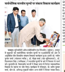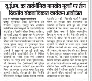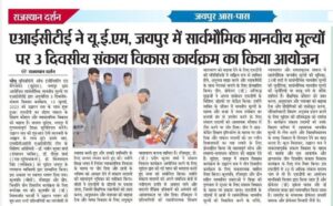 AICTE Approved Faculty Development Program on Universal Human Values at the University of Engineering & Management (UEM), JAIPUR on 13th-15th July, 2023.