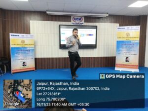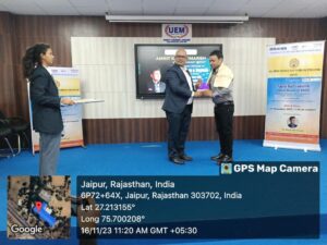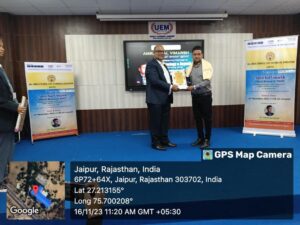 Following the insightful presentation, an interactive Question-Answer Session allowed participants to engage with Mr. Bansal, fostering a deeper understanding of the transformative concepts. The session concluded with a Vote of Thanks delivered by Prof. (Dr) Pradeep Kumar Sharma, Registrar, UEM Jaipur.