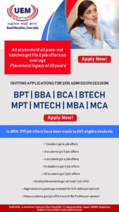 BPT | B.Tech | BBA | BCA | MPT | M.Tech | MBA | MCA courses at the University of Engineering & Management (UEM), Jaipur.