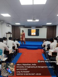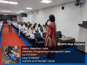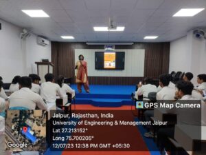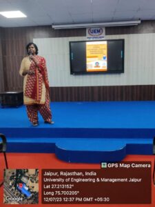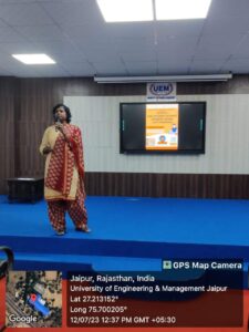 Codesta Coding Club of the University of Engineering & Management (UEM), JAIPUR, in association with IIC, and ACM Student Chapter UEMJ, has organized a session on “Angel Investment/VC Funding Opportunity for Early Stage Entrepreneurs” for final year students. Session was taken by Prof. (Dr.) G. Uma Devi, UEM Jaipur.