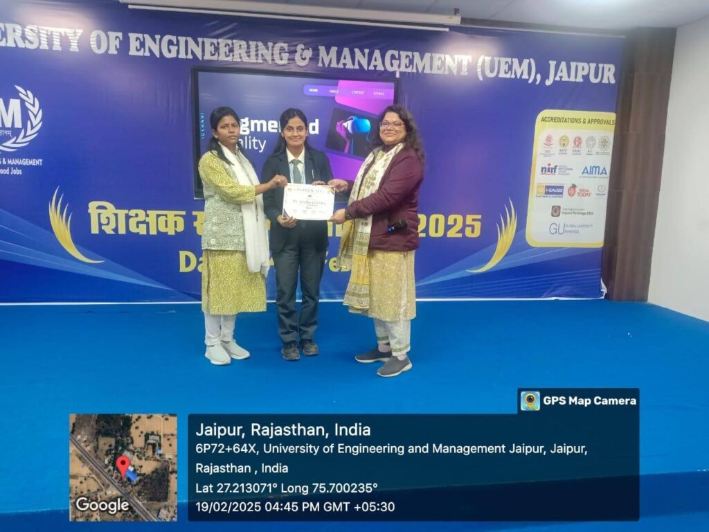 The University of Engineering & Management (UEM), Jaipur, takes great pride in sharing that Prof. Sanchari Basak, Assistant Professor of English, was felicitated as the honorable judge of the English Slam Poetry competition at Mood Indigo (City Level Eliminations) held in Jaipur on 8th September. Mood Indigo, IIT Bombay’s annual cultural festival, is one of Asia’s largest and most prestigious college fests, bringing together diverse competitions, performances, and celebrity appearances that celebrate creativity and talent on a national stage. Prof. Basak’s recognition as a judge at such a reputed platform reflects not only her academic and literary excellence but also UEM Jaipur’s growing presence in arenas that extend beyond academics into art, culture, and creative expression. #UEMJaipur#FacultyExcellence#MoodIndigo#IITBombay#SlamPoetry#UEMPride#AcademicLeadership#CulturalEngagement#BeyondAcademics