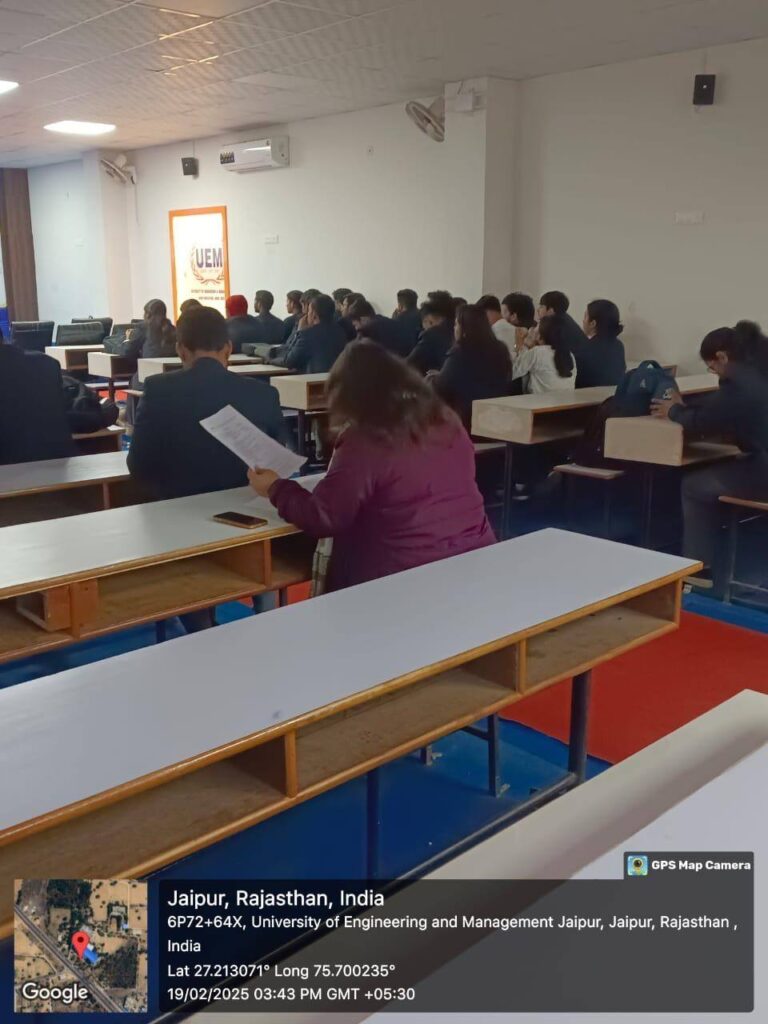 Codesta Coding Club of University of Engineering and Management, Jaipur in association with IIC, IQAC and ACM UEMJ CHAPTER conducted a seminar on Augmented Reality on 19.02.24 in the Basement Seminar Hall for all students of 2nd year B.tech CSE and AIML.