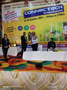ConnecTech 2024 (UEM Technical Bonanza) Jhunjhunu, Rajasthan, has successfilly inaugurated today by Prof. Dr. Biswajoy Chatteejee, Vice-Chancellor, and Prof. Dr. Pradip Kumar Sharma, Registrar, UEM, Jaipur. More than 500+ Students of different prestigious schools of Jhunjhunu, Rajasthan participated in 6 different Categories of events.