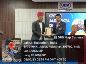 In the above-mentioned context, UEM Jaipur organised the second event of Cyber Jagrookta Diwas on 8th February, 2023. The event began with the felicitation of the Guest of Honour, Shri Nand Kishor Yadav, CEO, RNS Group of Companies by Prof. (Dr) Biswajoy Chatterjee, Vice Chancellor, University of Engineering and Management, Jaipur.