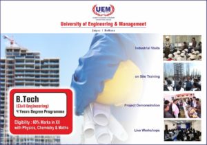 The civil engineering department at UEM Jaipur comprises of classroom teaching, laboratories, industrial visits, on-site training, project demonstration and live workshops.