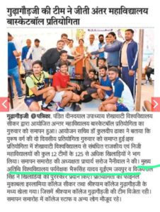 Dr. B.S.Yadav, Director, Physical Education, University of Engineering & Management (UEM), JAIPUR was invited as an Observer in Inter College Basketball Tournament at Pandit Deen Dayal Upadhyay Shekhawati University, a Government University at Sikar.