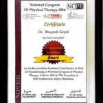 Dr. Bhupesh Goyal, the Head of Physiotherapy courses of the University of Engineering & Management (UEM), Jaipur was awarded with “Academic Excellence award” in the National Congress of Physiotherapy.