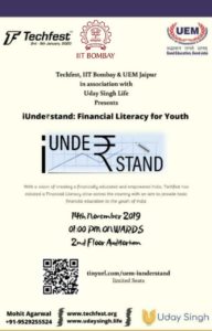 IIT Bombay Techfest and the University of Engineering & Management (UEM), Jaipur in association are organizing iunder₹stand-Financial Literacy for Youth at the UEM Jaipur Campus on the 14th November, 2019 from 1 pm.