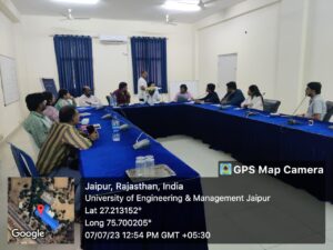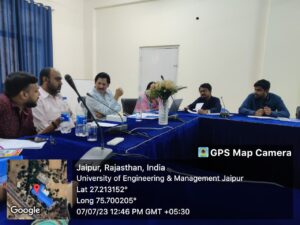 Glimpses of the Board of Studies(BOS) meeting for the Computer Science & Engineering (CSE) department, held on 07.07.2023 at Board Room of the University of Engineering & Management (UEM), JAIPUR.