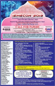 The 9th Annual Information Technology, Electromechanical and Microelectronics Conference (IEMECON – 2019) will be held during 13th – 15th March, 2019 at B.M. Birla Auditorium & Conference Halls, Jaipur in technical co-sponsorship with IEEE Delhi Section.