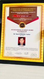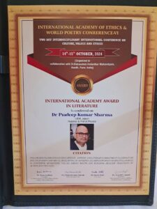 It was a great privilege that both were awarded with prestigious “International Academy Award ” by the International Academy of Ethics.