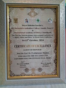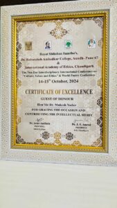 Its a matter of great honour that Prof. (Dr) Pradeep Kumar Sharma, Registrar, UEM Jaipur and Prof. (Dr) Mukesh Yadav, Associate Dean, Academics and Foreign Relations served as the Guest of Honour at the Two-Day International Conference on Culture, Values, and Ethics, as well as the World Poetry Conference, organized by Dr. Babasaheb Ambedkar Mahavidyalaya, Aundh, Pune, in collaboration with the International Academy of Ethics, held on October 14-15, 2024.