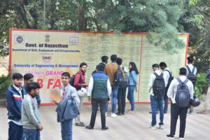 These are moments from the Jaipur Grand Job Fair organised by the Govt. of Rajasthan, Department of Skills, Entrepreneurship and Employment, in association with UEM JAIPUR, at the University campus. Students from all across Rajasthan and outside, came for appearing in job interviews with 60+ companies under a single roof. The initial selection of candidates happened in the job fair, and the candidates will be called for final round to the respective companies.