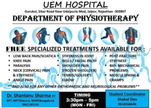 An initiative by the students of BPT (Bachelor of Physiotherapy) of the University of Engineering & Management (UEM), Jaipur and UEM Hospital……