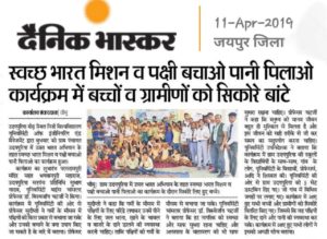 Press release in Dainik Bhaskar dated 11th April, 2019, regarding “SAVE THE BIRDS” initiative and “SWACHHA BHARAT MISSION”