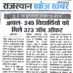 Press releases in “Rajasthan Khoj Khabar” and “Jaipur Times” on 24th April and 28th April, 2018 respectively regarding excellent placement scenario of the University of Engineering & Management (UEM), Jaipur.