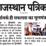 Press releases in the 2 most leading newspapers of Rajasthan – Dainik Bhaskar and Rajasthan Patrika on 26th August, 2019, regarding Convocation-2019 held at the University of Engineering & Management (UEM), Jaipur, where degrees were given away to the students of 2018 passout batch.
