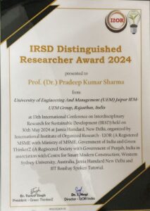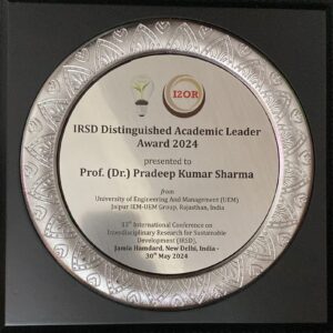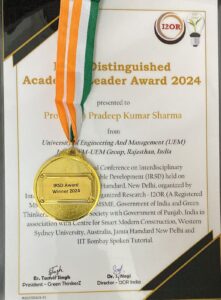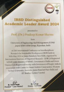 Prof. (Dr.) Pradeep Kumar Sharma, Registrar and Provost, UEM Jaipur has been conferred with most prestigious