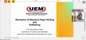 Professor (Dr.) Mukesh Yadav, HOD, Department of English delivered an invited online lecture titled “Mechanics of Research Paper Writing and Publishing”