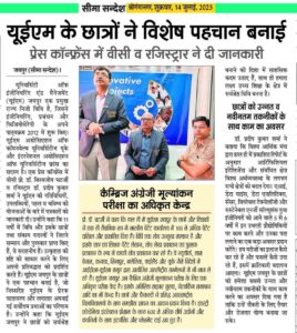 Publications about the achievements of the students of the University of Engineering & Management (UEM), JAIPUR in leading newspapers of Rajasthan.