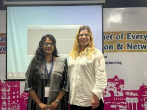 In addition to these online presentations, an in-person keynote was delivered by Prof. Jasmin Grosinger from Graz University of Technology, Austria, on “RF Design for Ultra-Low Power Wireless Communication.” Prof. Jasmin’s presentation underscored innovative RF design techniques, emphasizing solutions for ultra-low power consumption in wireless communication systems, a topic of great interest to both researchers and industry professionals. Prof. Jasmin expressed her gratitude for the warm reception she received, extended by Associate Deans Prof. G. Uma Devi and Dr. Mukesh Yadav, as well as faculty members from the department. As a token of appreciation, Prof. G. Uma Devi felicitated Prof. Jasmin, who expressed her happiness with the hospitality and welcoming atmosphere at the conference.