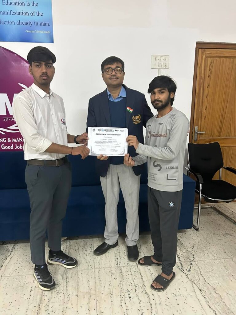 Students of University of Engineering & Management (UEM), JAIPUR have won all 1st, 2nd and 3rd positions at both Robo Soccer and Robo War events at NIT Srinagar, and also the 2nd position at Innovations event and the 1st and 2nd positions at Remote Controlled Car there. They won the 1st position in Innovations at SLIET Punjab and 2nd position in Innovations at RJIPT UP. The names of the students are Tejas Kharkar, Ashish Kumar Jha, Manmohan Singh, Himanshu Jangid, Mayank Sharma, Rajput Yashu, Divyansh Sachdev and Mohit Raj.