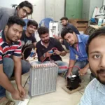 The last picture in the post shows the moment, when Prof. Dr. Biswajoy Chatterjee, Vice Chancellor of University of Engineering & Management (UEM), Jaipur enjoying the cold AC weather in the Teachers’ Room under the working AC, with the following students who developed and manufactured the AC :-