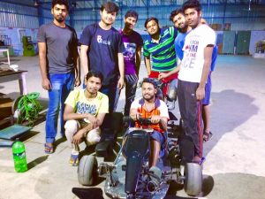 The students of the University of Engineering & Management (UEM), Jaipur with their newly designed Racing car (another one after the ATV) at their Mechanical Workshop.