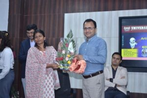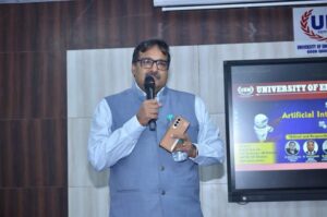 Chief Guest and Keynote Speaker for the event was Dr. Ajay Data, CEO and Founder, Data Ingenious Global Ltd. Dr. Data elaborated on the various uses cases of the artificial intelligence and its wider use in the general life of the public. He informed students about the good and worst schenerios related to the use of the Al based models and applications.