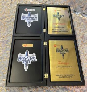 The IEM and UEM group of Institutions and Universities, Kolkata and Jaipur was awarded in the category of “Best Placements – Domestic and International” by Zee 24 Ghanta. We are thankful to all our students, teacher colleagues, alumni members, staff members of IEM and UEM for continuously giving their maximum, for the betterment of the institutional group, and making us able enough for consideration of these awards.