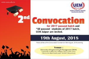 UEM Convocation to be held at 19th August 2018