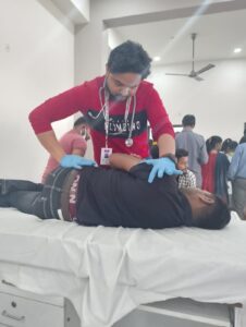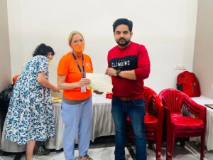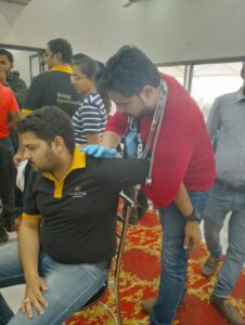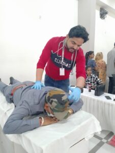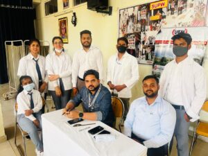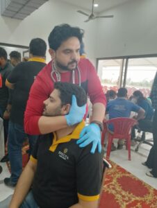 Dr. Gaurav Shrivastava, Associate Professor, UEM Jaipur and Dr.Vishnuraj, Assistant Professor. UEM Jaipur were present for treating the patients, supervision and assigning the role to students and also recieve the individual certificate of appreciation and momento on behalf of UEM University.