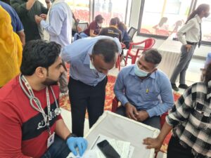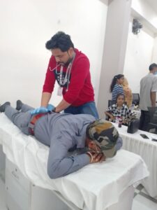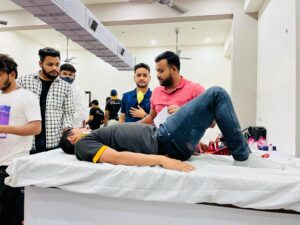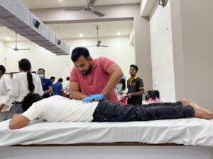 UEM Jaipur International Medical Relief Camp (5th Day) A Total of 70 plus patients are treated successfully in IMR camp and provided them physiotherapy services at spectra quartz industry in Bagru, Jaipur. A total of 50 students of BPT 3rd year and final year were present with their faculty members.