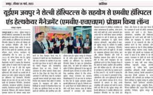 Mr. Babu Thomas, CHRO, Shalby Hospitals said that “We are delighted to launch the MBA in Hospital and Healthcare Management program in association with UEM Jaipur which will provide students with the necessary knowledge and skills to succeed in the dynamic and rapidly evolving healthcare industry. We have designed the curriculum to ensure that students receive the most up-to-date and relevant knowledge and skills, and we look forward to welcoming the first batch of students to our program.”