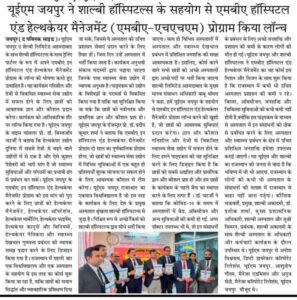 UEM Jaipur Launches MBA in Hospital and Healthcare Management Program in association with Shalby Limited with Shalby Academy as Training Partner.