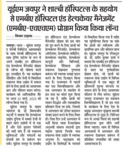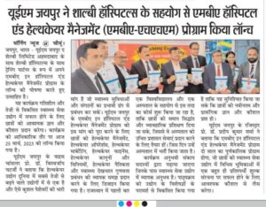 UEM Jaipur is excited to announce the launch of its MBA in Hospital and Healthcare Management program in association with The Shalby Limited Ahmedabad with Shalby Hospitals as Training Partner. This program will provide students with the necessary knowledge and skills to succeed in the dynamic and rapidly evolving healthcare industry. The program has been officially launched today on March 25, 2023.