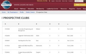 A screenshot of our University as a prospective club along with its club number is attached from the website.