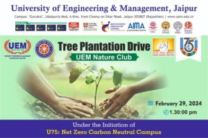 University of Engineering and Management, Jaipur is organising a Tree Plantation Drive in the Campus under the initiation of U75: National movement of Net-Zero Carbon Neutral University Campus. The details of the drive are: