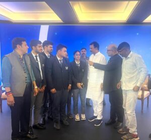_Chief guest Dr. Prem Chand Bairwa, Deputy Chief Minster of Rajasthan, felicitated the representatives of UEM Jaipur Registrar Prof. Dr. Pradeep Kumar Sharma, Associate Dean Academics Prof. Dr. Mukesh Yadav, Head MBA Prof. Dr. Rahul Sharma, Professor Dr. Prapfull Chhabra and Sr. Manager Corporate Relations Mr. Sankar Sing.