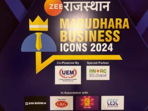 University of Engineering and Management UEM Jaipur has received the award for EXCELLENCE IN EDUCATION IN RAJASTHAN during the program MARUDHARA BUSINESS ICON 2024