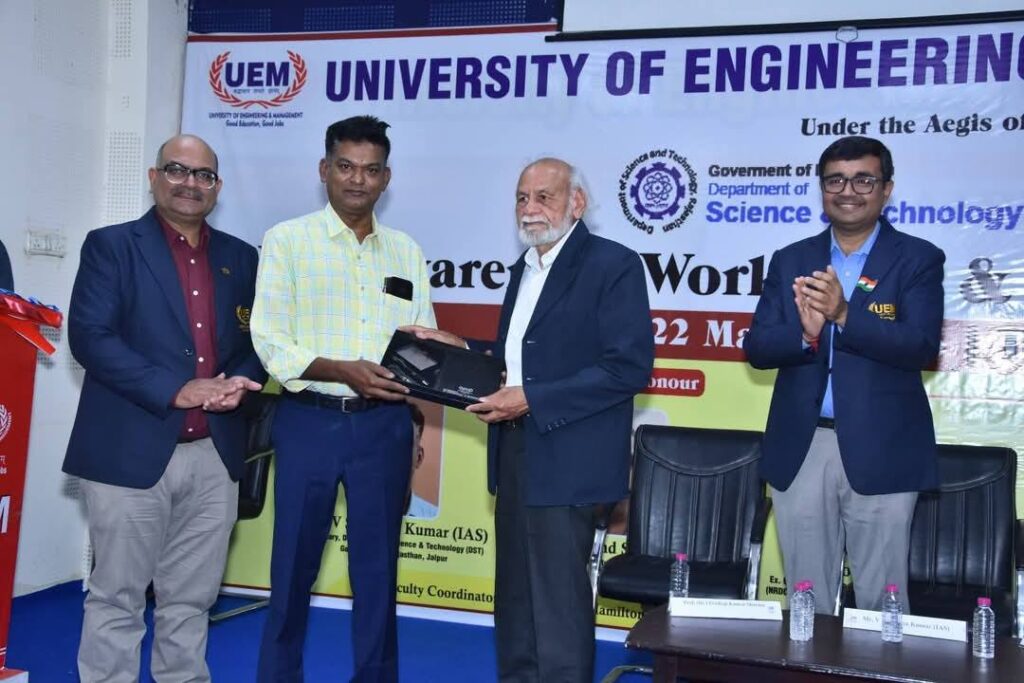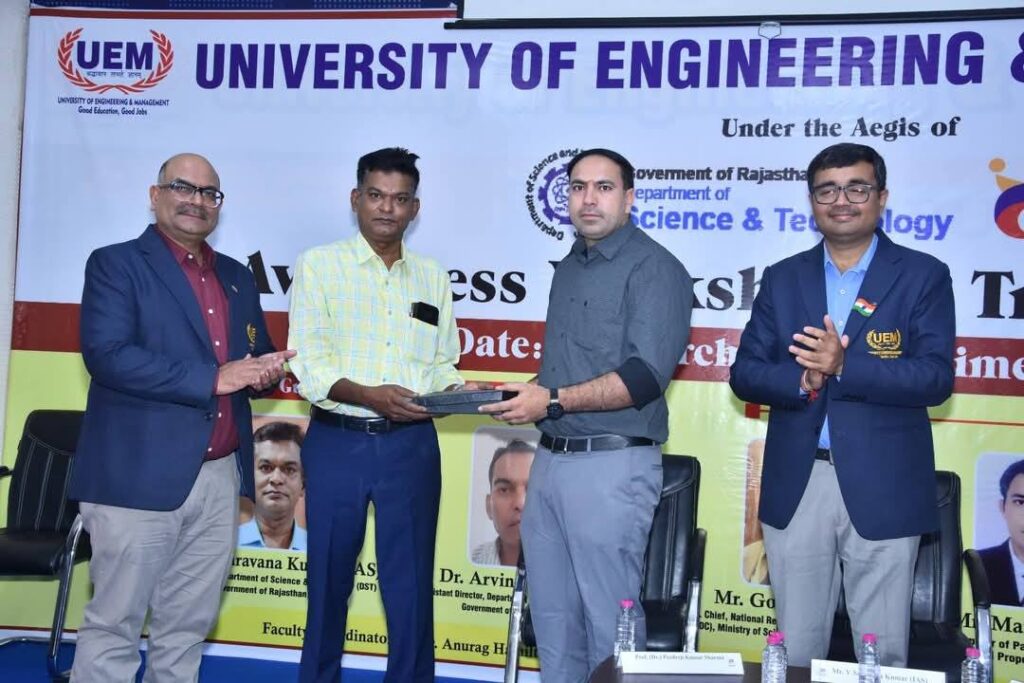 Prof. Dr. Pradeep Kumar Sharma, Registrar, UEM Jaipur, expressed gratitude to the DST, Rajasthan, for funding the workshop. He emphasized the importance of understanding the intricacies of patent filing.