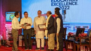 Prof. (Dr.) Pradeep Sharma, Prof. (Dr.) Anirudha Mukherjee and Prof. Sayak Pramanik received the award on behalf of UEM Jaipur.