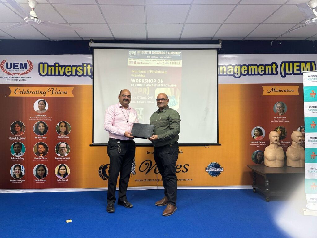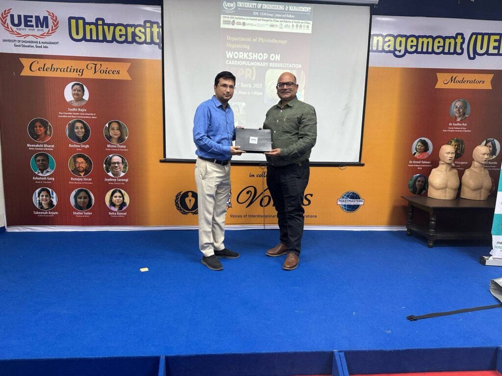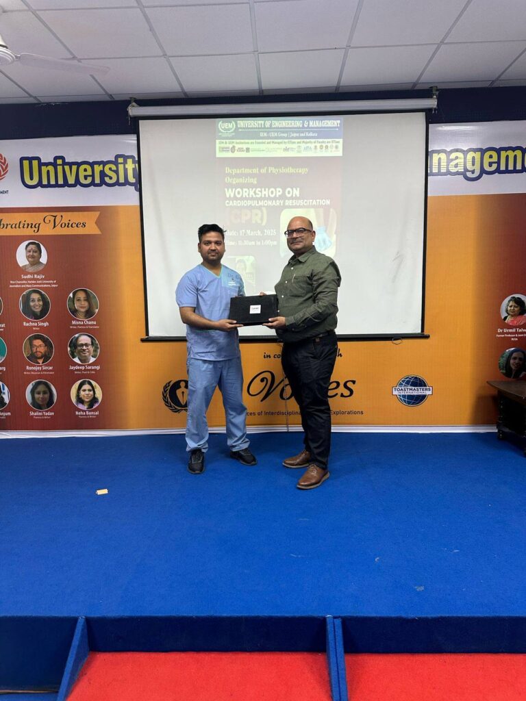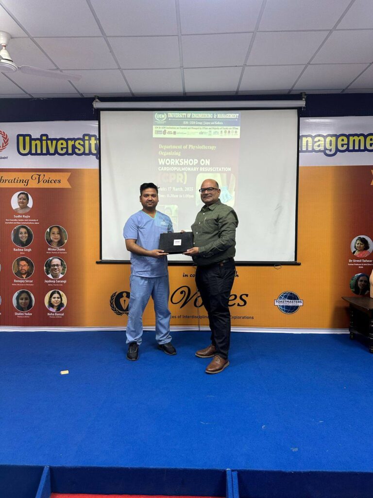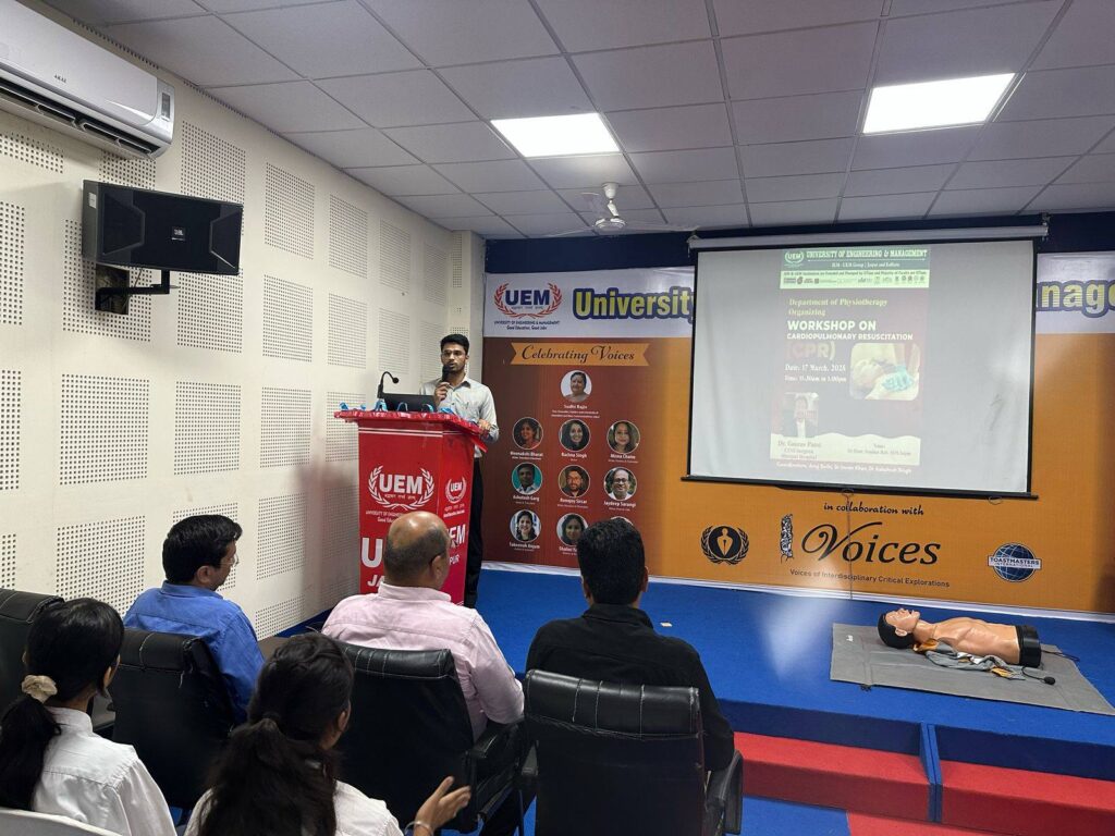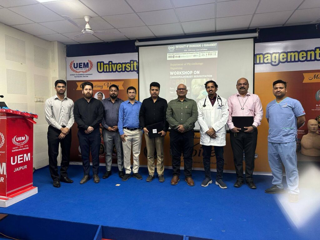 University of Engineering & Management (UEM), Jaipur is proud to share the successful completion of a Workshop on Cardiopulmonary Resuscitation (CPR), conducted by the Department of Physiotherapy on March 18, 2025, at the UEM Jaipur campus.