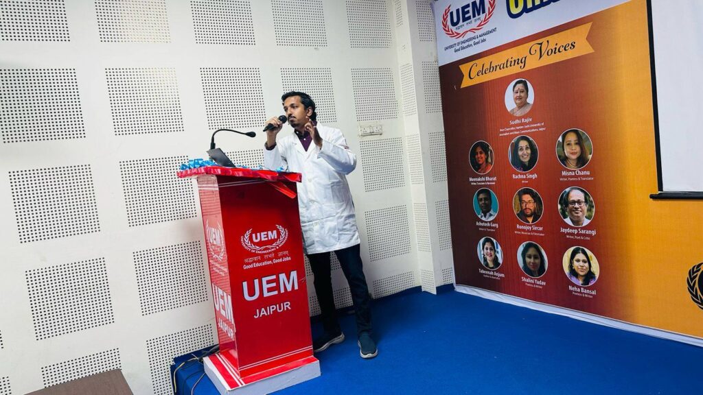 The University of Engineering & Management (UEM), Jaipur, takes great pride in sharing that Prof. Sanchari Basak, Assistant Professor of English, was felicitated as the honorable judge of the English Slam Poetry competition at Mood Indigo (City Level Eliminations) held in Jaipur on 8th September.