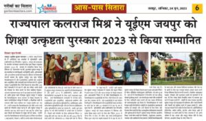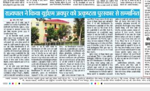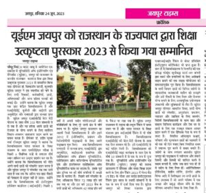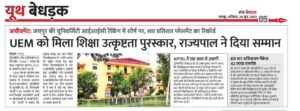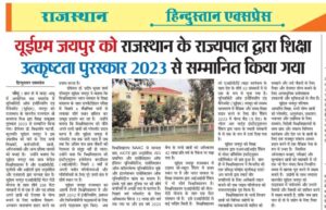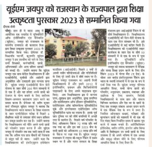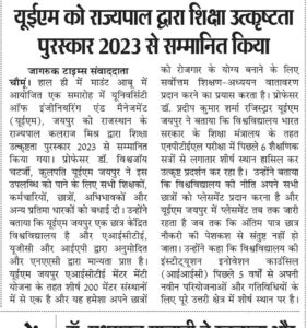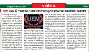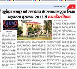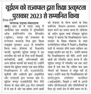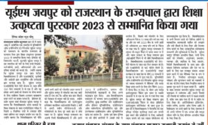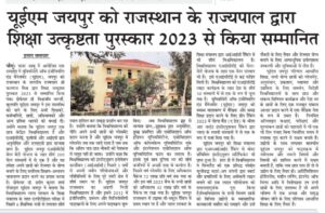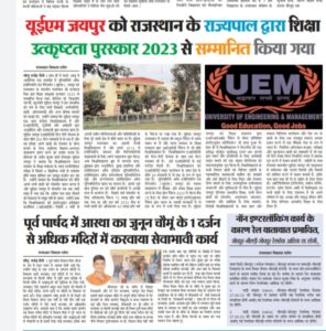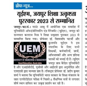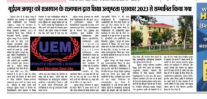 University of Engineering & Management (UEM), JAIPUR was honored by the Hon’ble Governor of Rajasthan with Academic Excellence Award, 2023.